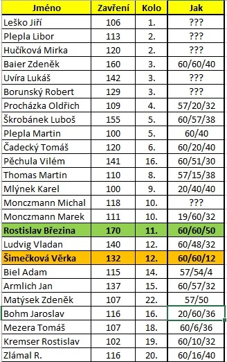 Jediným hráčem se zavřením 100+ byl Zdeněk Matýsek. Vystřihl zavření 107 na dvě šipky - 57/50. Bylo to v souboji o postup mezi osm hráčů. Zdeněk dlouho nepřemýšlel a chladnokrevně mi (otto) zavřel, ač jsem měl na terči nachystáno, tuším 40. Ujall se tak v zápase vedení 1:0. BRAVO, come on rum :-D